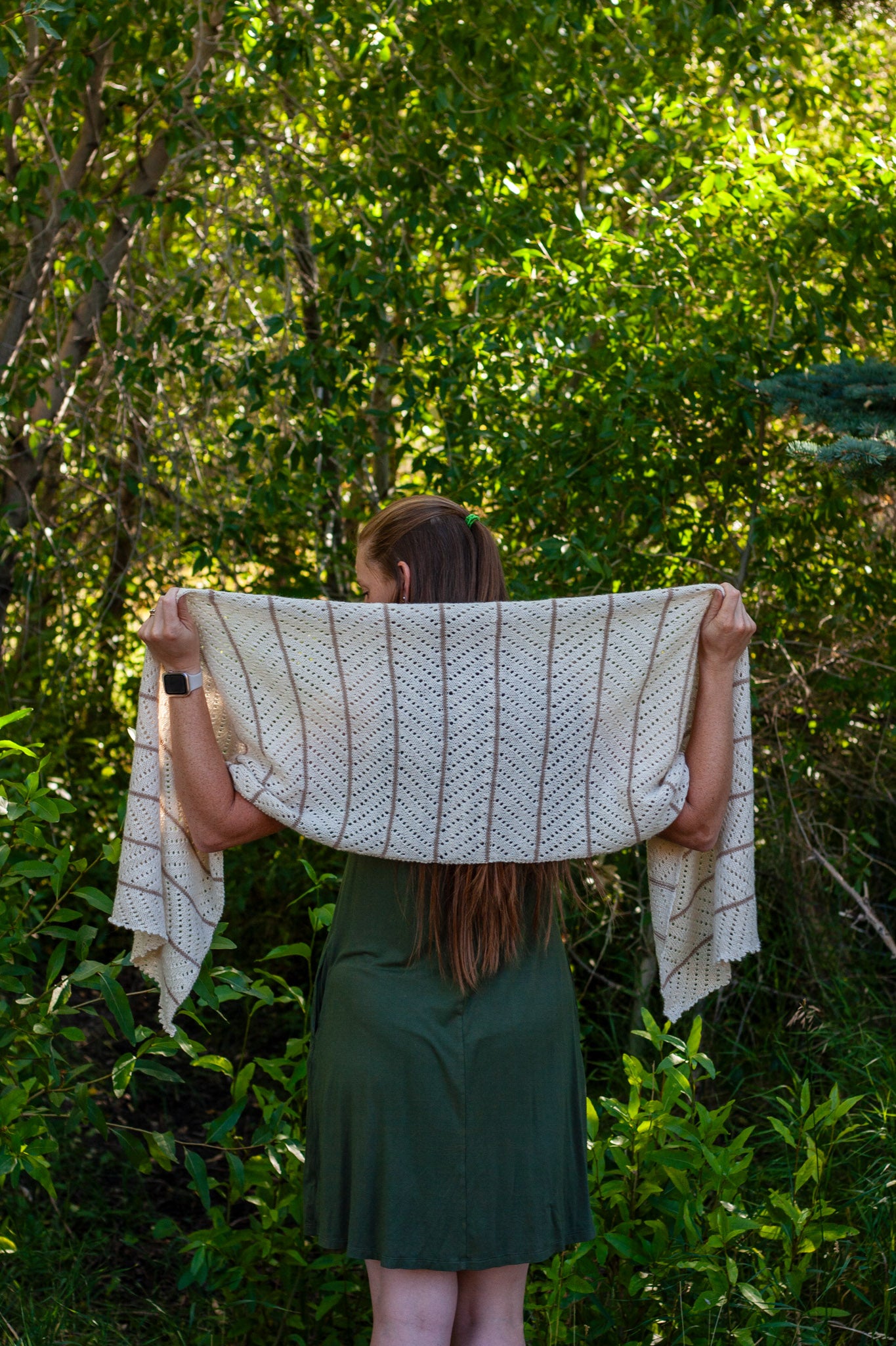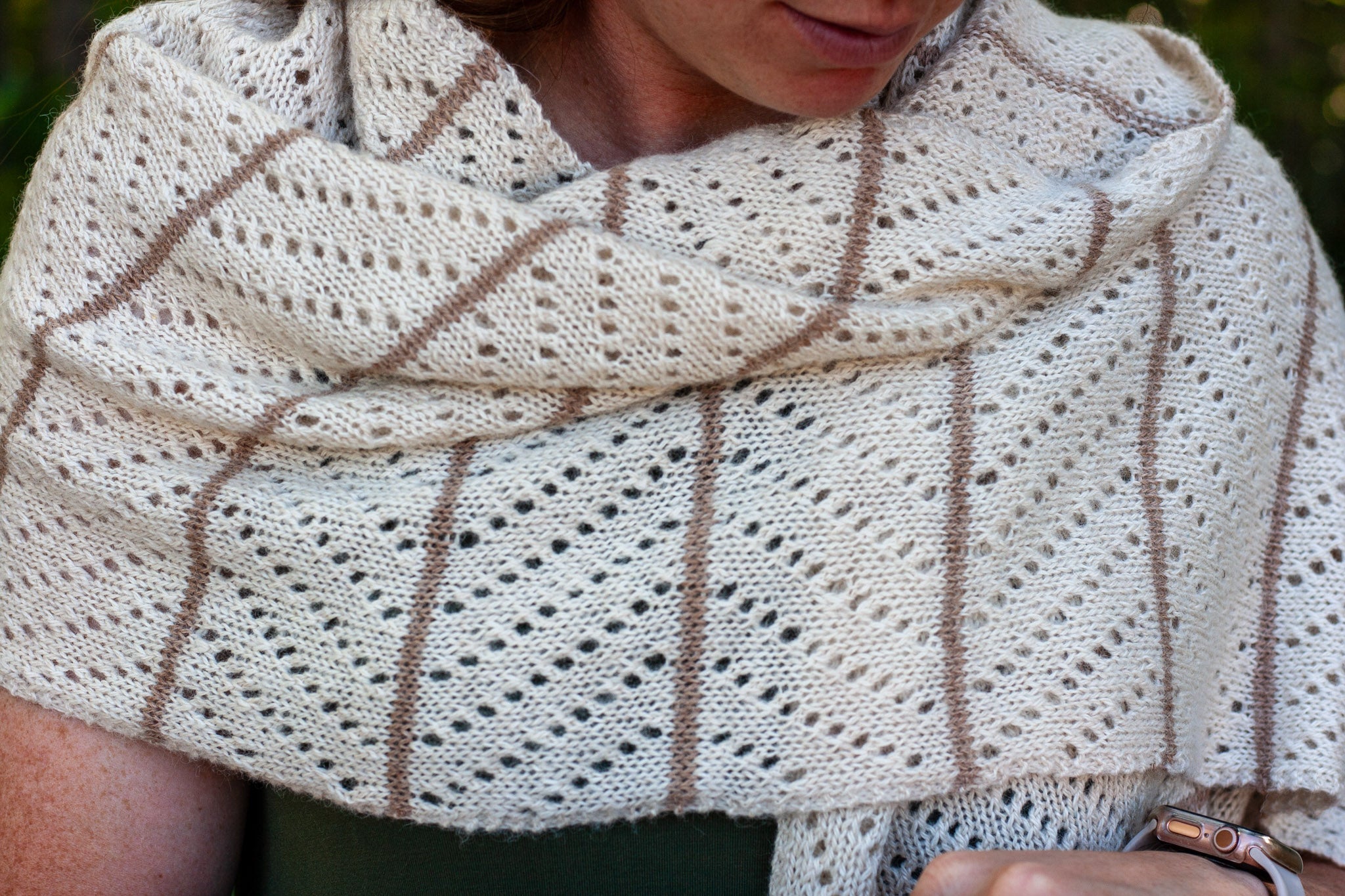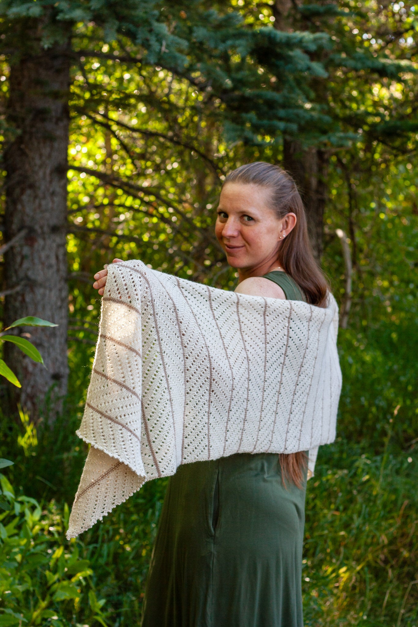 This rectangular shawl is a dream to knit. Alternating sections of zigzag eyelets form a wonderfully simple yet stunning design. Each row brings a new rhythm, engaging both novice and seasoned knitters alike (while still being simple enough for TV knitting)! With its versatile size, the Abigail Wrap can be styled in countless ways, making it a perfect addition to any wardrobe.